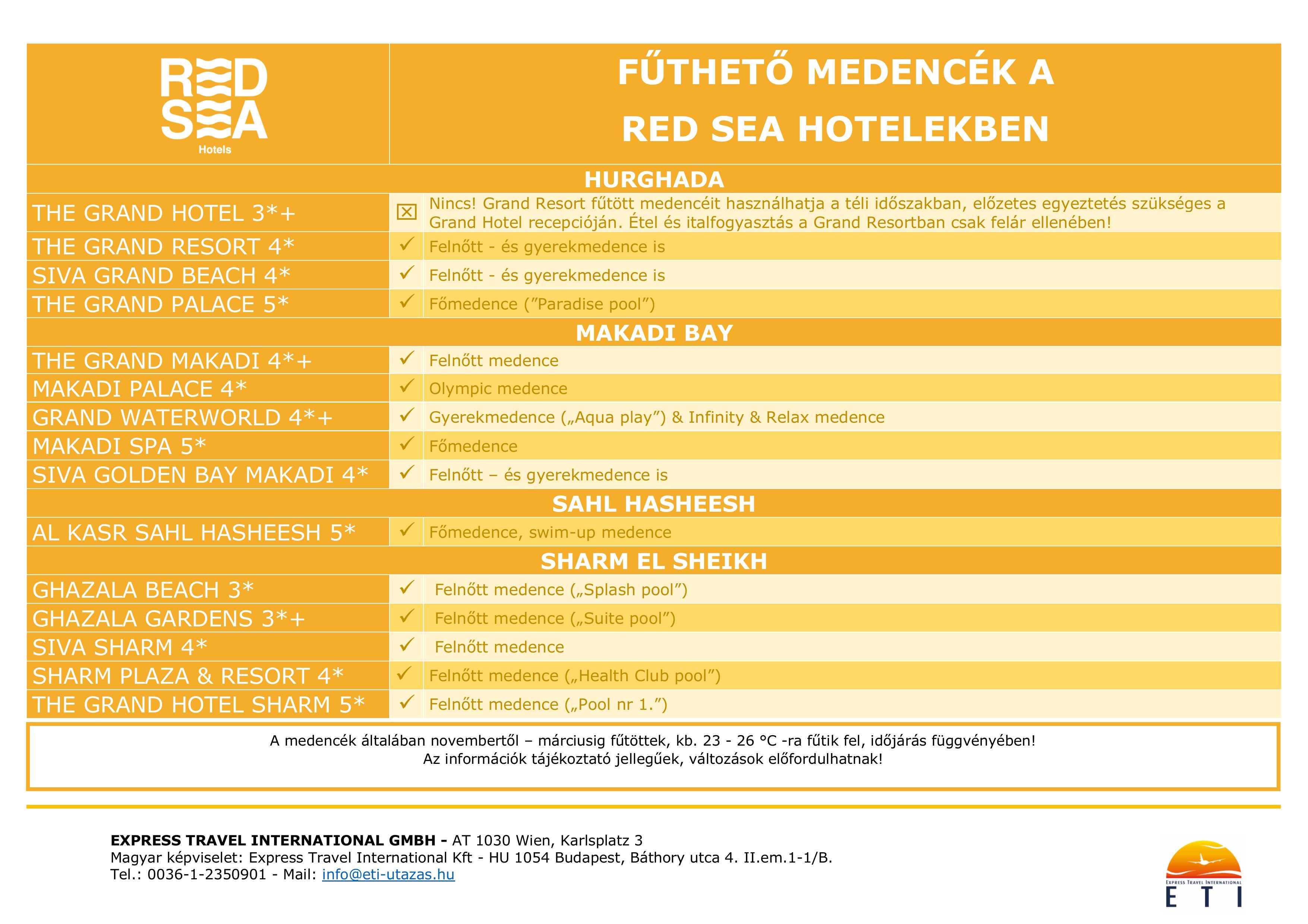 Red Sea Hotels – legfontosabb információk