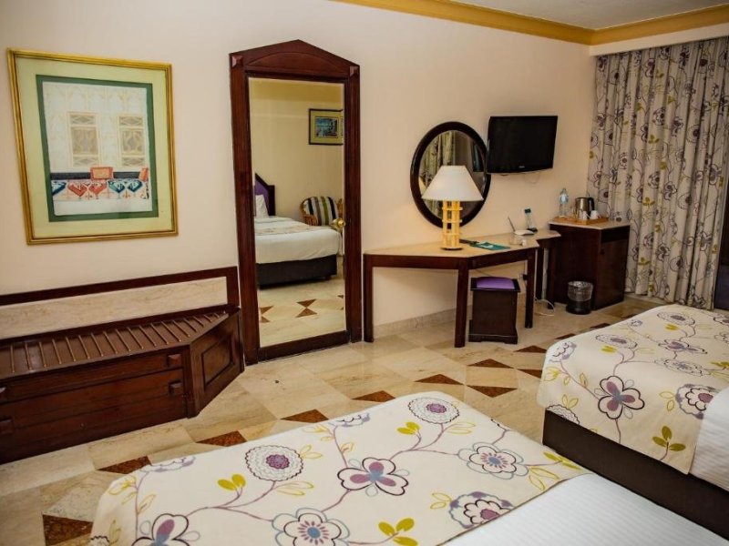 SZOBÁK: A kényelmes Klasszik szoba 42 m² (CDR) kétágyas szobák káddal vagy zuhanyzóval, WC-vel, hajszárítóval, légkondicionálóval, kávé/ teafőzővel, széffel, telefonnal, műholdas TV-vel, minibárral (felár ellenében), erkéllyel . Foglalható a klasszik oldalról tengerre néző kilátással rendelkezü szoba (CSS) és tengerre néző klasszik szoba is (DCV) . DELUXE szoba (DXM) : A negyedik vagy az ötödik emeleten található kétágyas szobák ugyanolyan felszereltséggel rendelkeznek, és tengerrenéző terasszal. CSALÁDI szoba 52 m² (FZ) ugyanolyan felszereltséggel rendelkezik, érkezéskor egy üveg ásványvíz és egy gyümölcskosár bekészítéssel várják a vendégeket. A szobák nem rendelkeznek erkéllyel vagy terasszal, hanem arab stílusú ablakkal, oldalról tengerre néző kilátással.