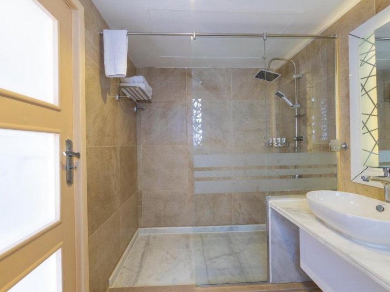 Ingyenes napozóágyak, párnák és napernyők állnak rendelkezésre a medencéknél és a strandon. A strand csak lépcsőn közelíthető meg, de transzferszolgáltatás is rendelkezésre áll (felhívjuk figyelmét, hogy a transzfer emelt dzsippel történik, a bejárat hátul van). A strandtörölközőket vonzó strandtáskákban biztosítjuk – a vendégek érkezéskor a szobájukban találják azokat.